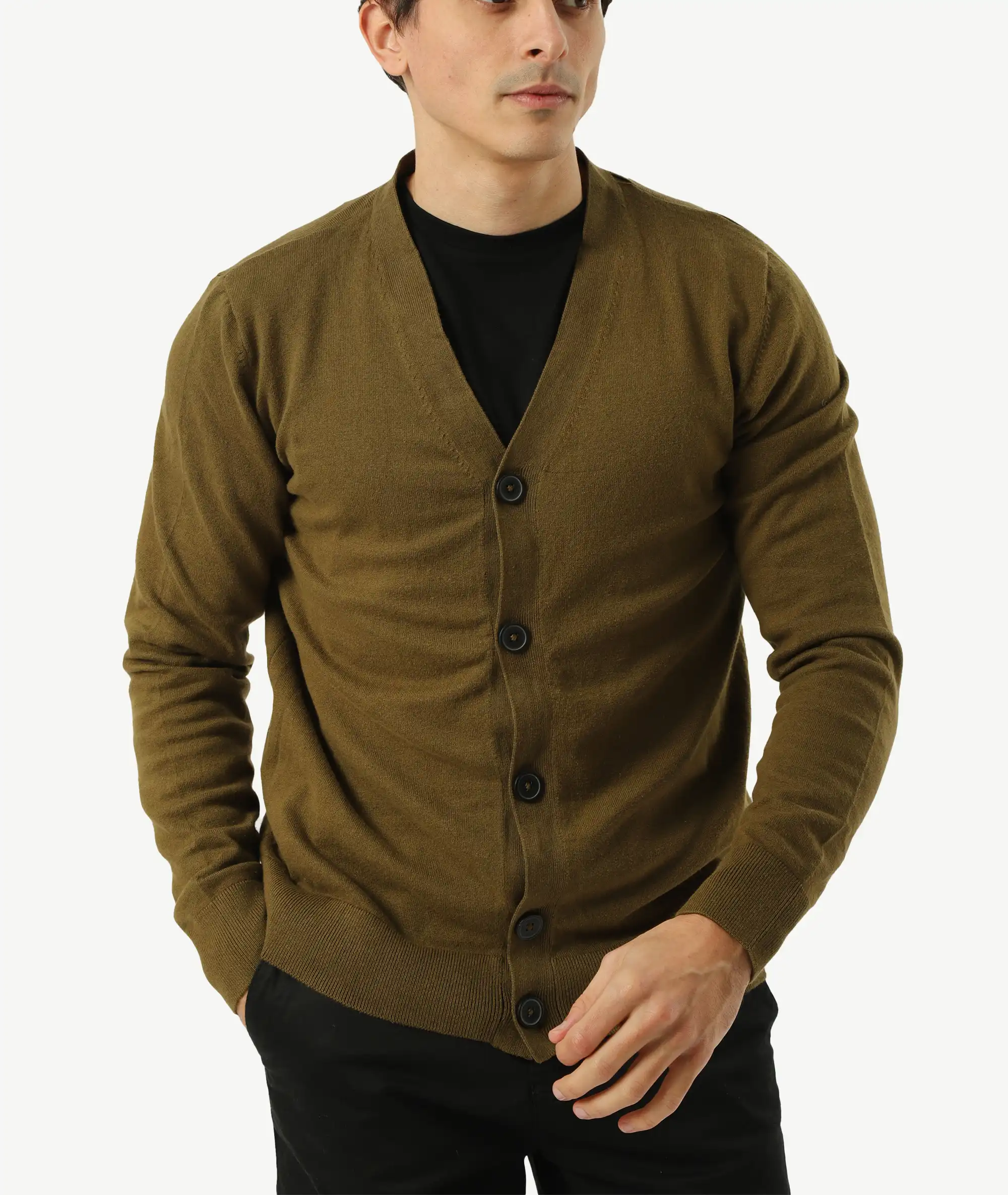 Cardigan kaki boutonné – Intemporel et polyvalent