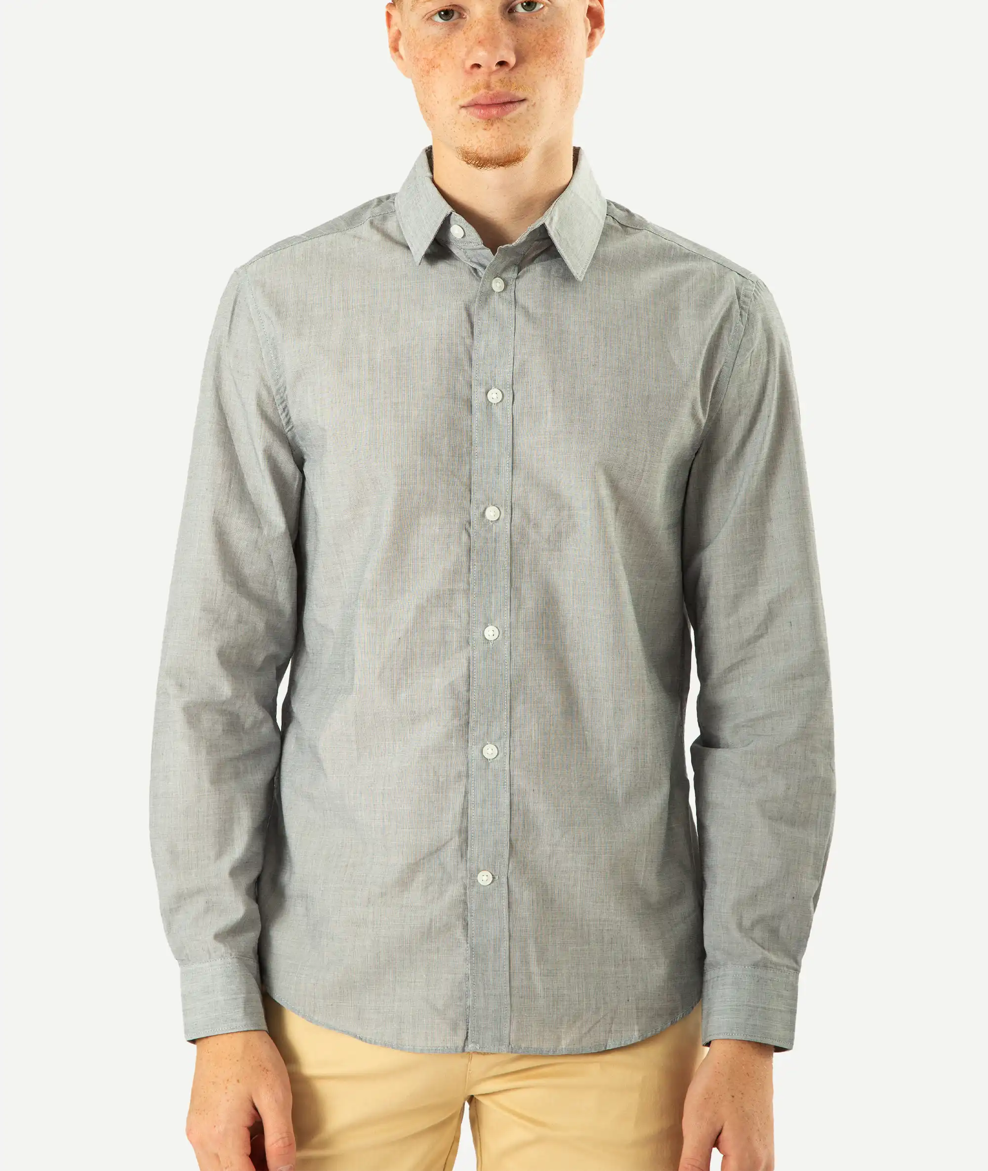 Chemise en tissu tissé avec finition facile à repasser.