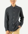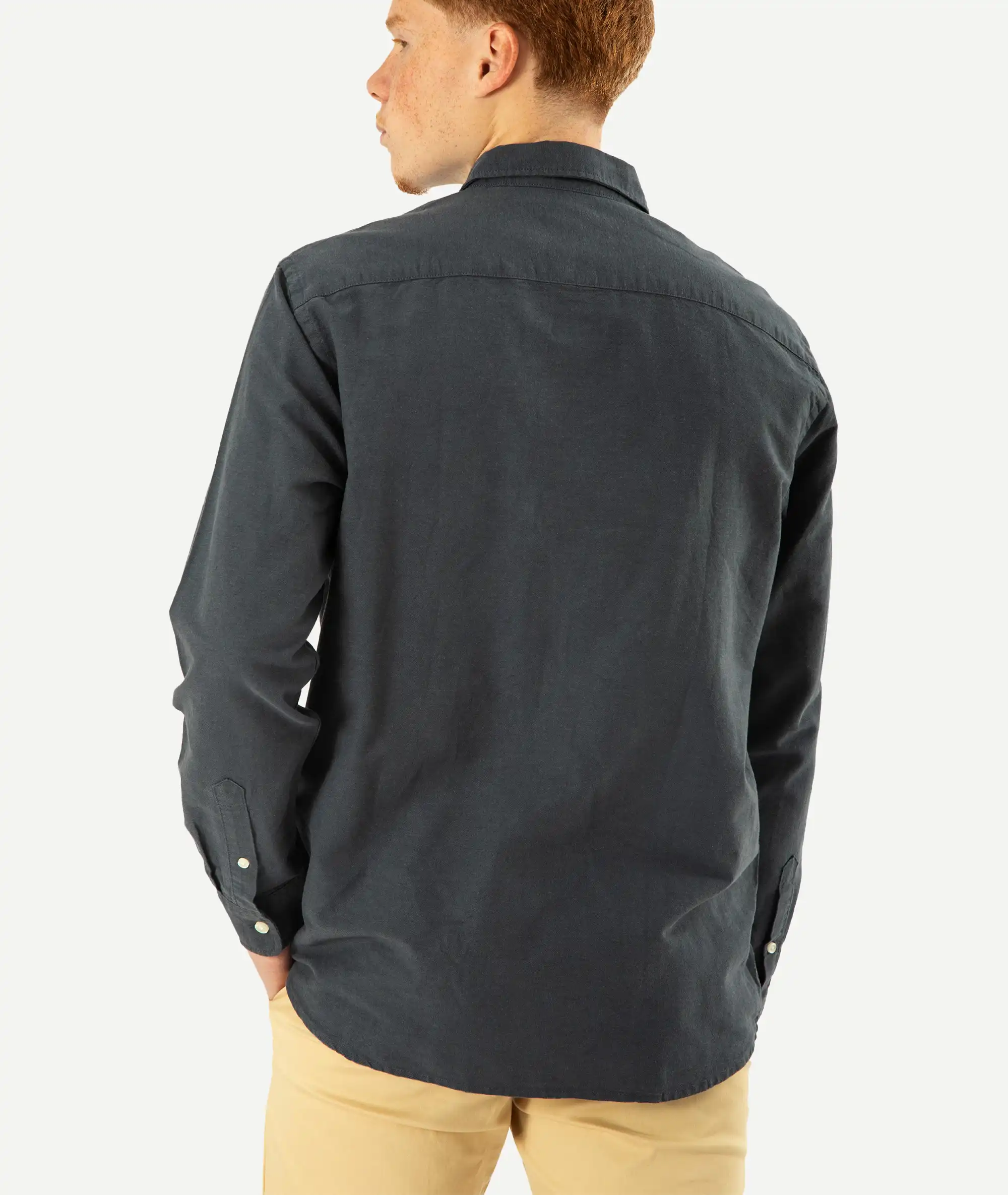 Manches longues avec poignets boutonnés et patte de boutonnage avec bouton de liaison. Ourlet légèrement arrondi.