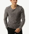Ce modèle se distingue par son tissu chiné au rendu sophistiqué et ses manches longues qui assurent chaleur et confort lors des journées plus fraîches. Le col rond classique ajoute une touche intemporelle