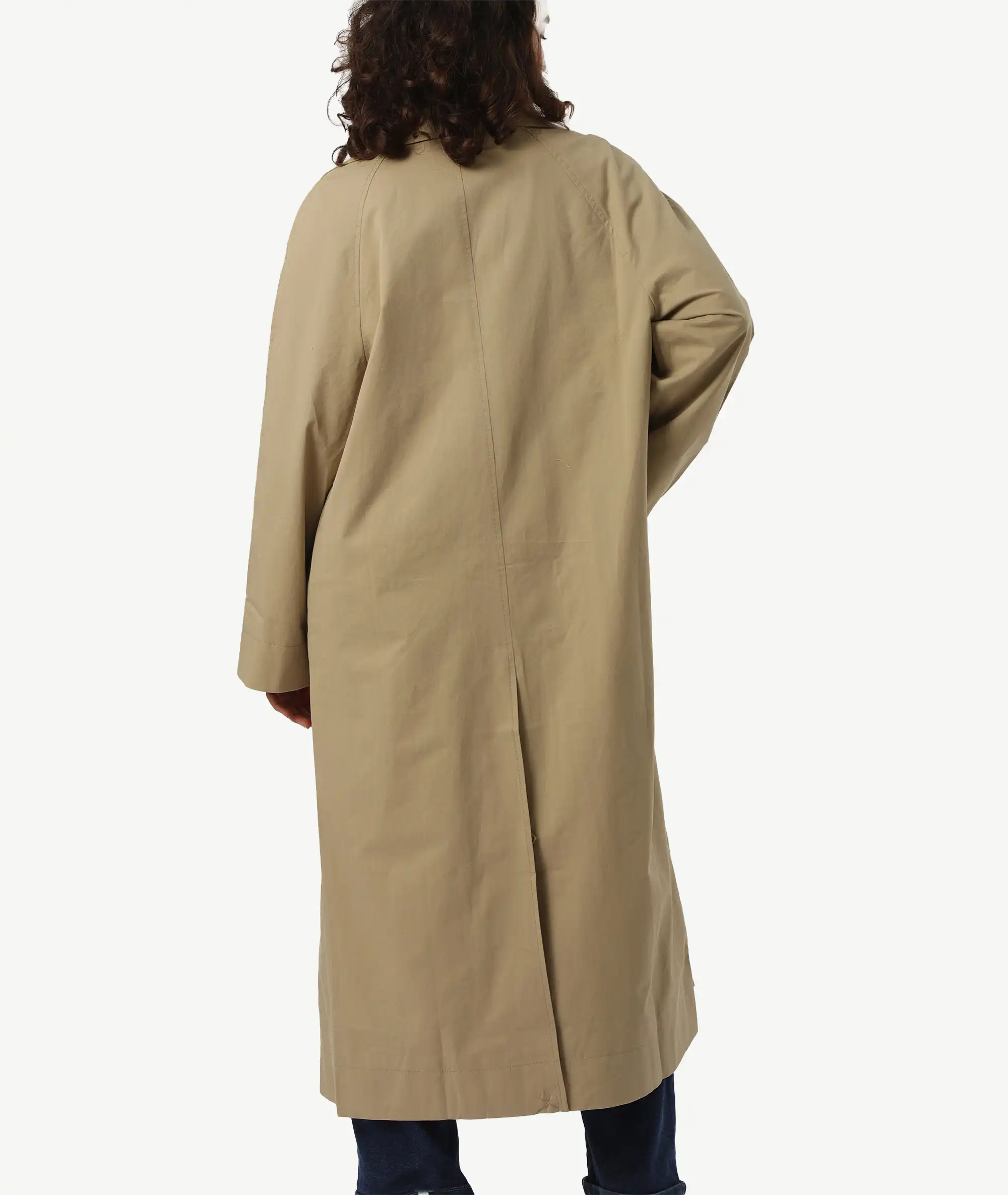 La finition résistante de ce vêtement protège contre les pluies légères, repoussant le contact avec l’eau et les gouttes de pluie. Style oversize. Coupe longue. Col à revers. Revers en pointe. Manches longues. Deux poches latérales. Bas fendu à l’arrière. Doublure. Sans fermeture.